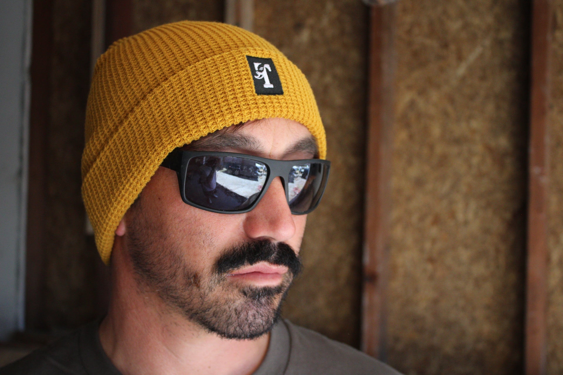 TUSK BOX LOGO- WAFFLE BEANIE MUSTARD